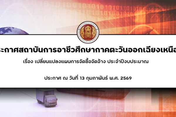 การจัดชื้อจัดจ้าง [13-02-2569] ประกาศสถาบันการอาชีวศึกษาภาคตะวันออกเฉียงเหนือ 2 เรื่อง เปลี่ยนแปลงแผนการจัดซื้อจัดจ้าง ประจำปีงบประมาณ 2569 ivene24 สัปดาห์ ago4 สัปดาห์ ago01 mins Read More