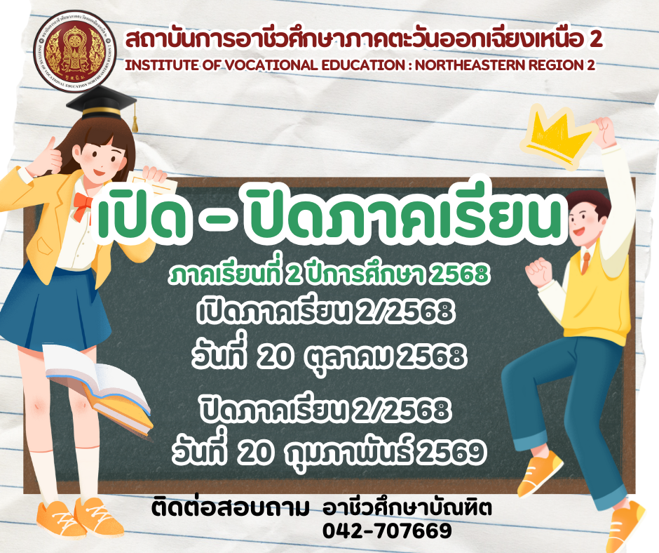 📢 ประกาศสถาบันการอาชีวศึกษาภาคตะวันออกเฉียงเหนือ 2เรื่อง กำหนดการเปิด–ปิดภาคเรียนที่ 2 ประจำปีการศึกษา 2568ระดับปริญญาตรีสายเทคโนโลยีหรือสายปฏิบัติการ (ทล.บ.) 🎓 ivene21 วัน ago 0